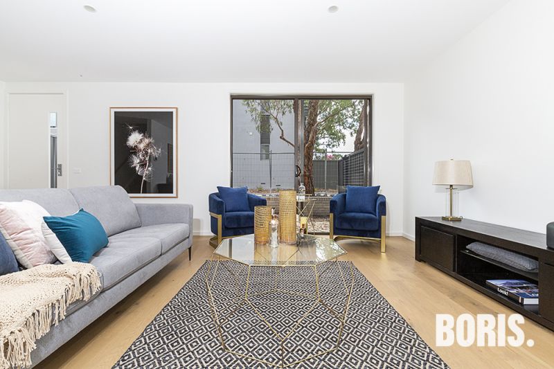 The kitchen has a walk-in pantry, european appliances including gas cooking. A large living room has direct access to the front courtyard, a powder room is conveniently located on the ground floor.