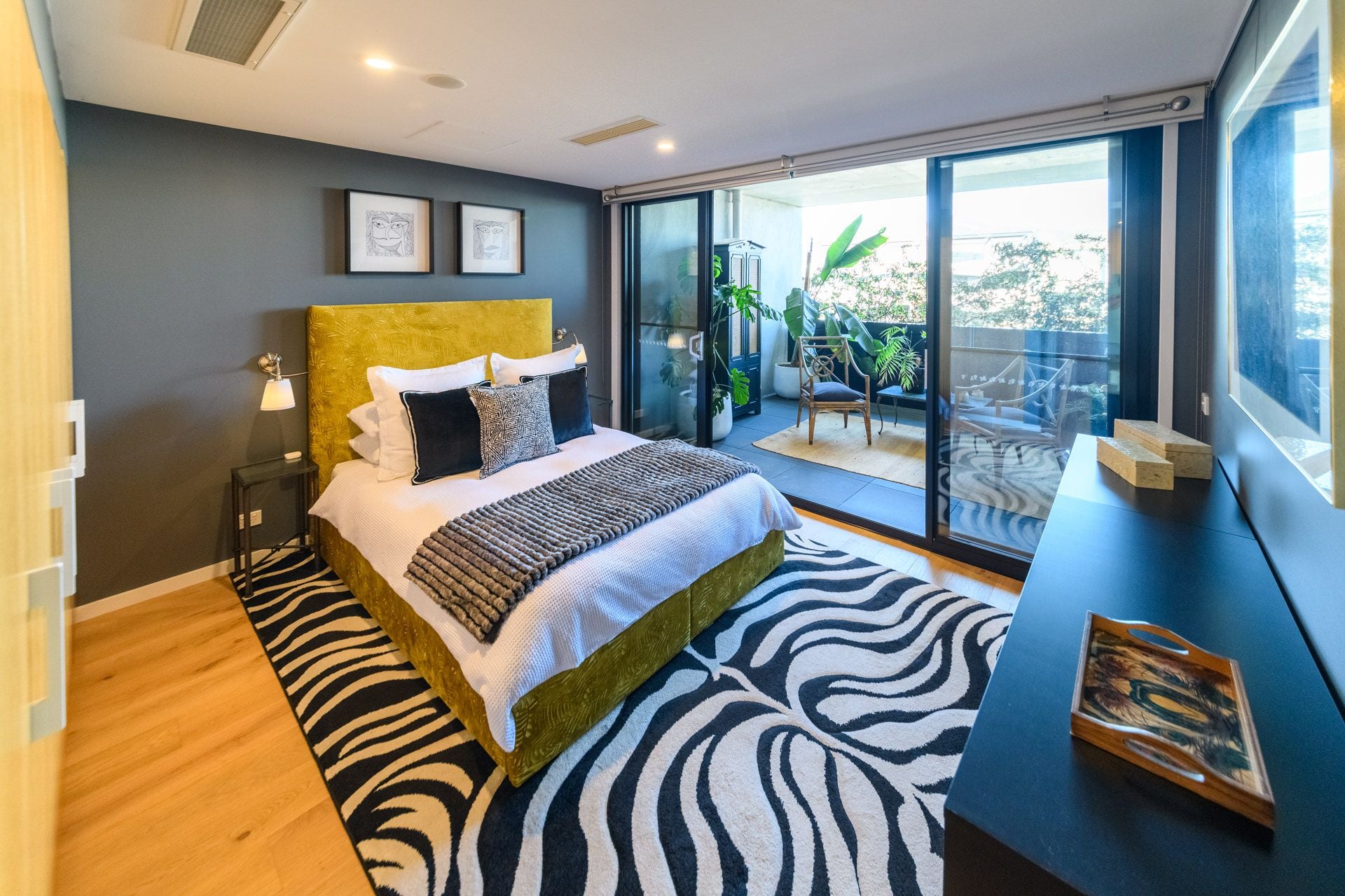 Engineered timber flooring flows throughout the residence, softened by bespoke designer rugs that enhance warmth and ambience. Double-glazed windows and doors, paired with ducted reverse-cycle air conditioning, ensure year-round comfort, acoustic privacy, and a tranquil living environment.