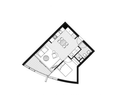 Apartment 119 is a cosy, one bedroom apartment with open plan living, modern kitchen, large windows and looks out onto the podium garden.