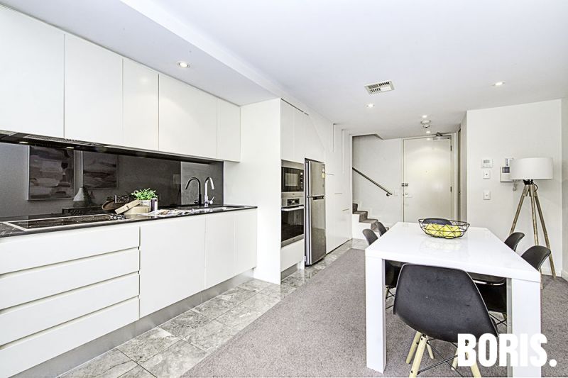 Thoughtfully designed, the apartment features a high-quality kitchen and a generous open-plan living and dining area that flows seamlessly to a sun-drenched private courtyard - perfect for relaxed evenings or refined entertaining. A convenient powder room is located on the lower level.