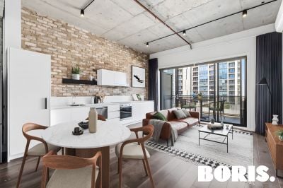 From the moment you enter, the apartment impresses with its sense of scale and individuality. Timber flooring, soaring concrete ceilings, full-height double-glazed windows and a striking exposed brick feature wall combine to create a space of undeniable presence and style.